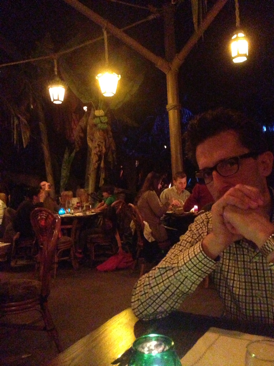 Blue Lagoon’s setting is its major selling point, nestled as it is within the Pirates of the Caribbean ride, so that you can watch the boats go by as you eat – in the photo, the lagoon is just behind the families in the background. The seating alongside the rail giving you the best view of drifting tourists tends to be for four diners plus, so actually it’s a good way to keep the kids occupied, waving at the goofily-grinning boatloads. The darkened, romantic atmosphere might otherwise not be such a draw for them. (It’s also what’s responsible for the quality of the photos – sorry).