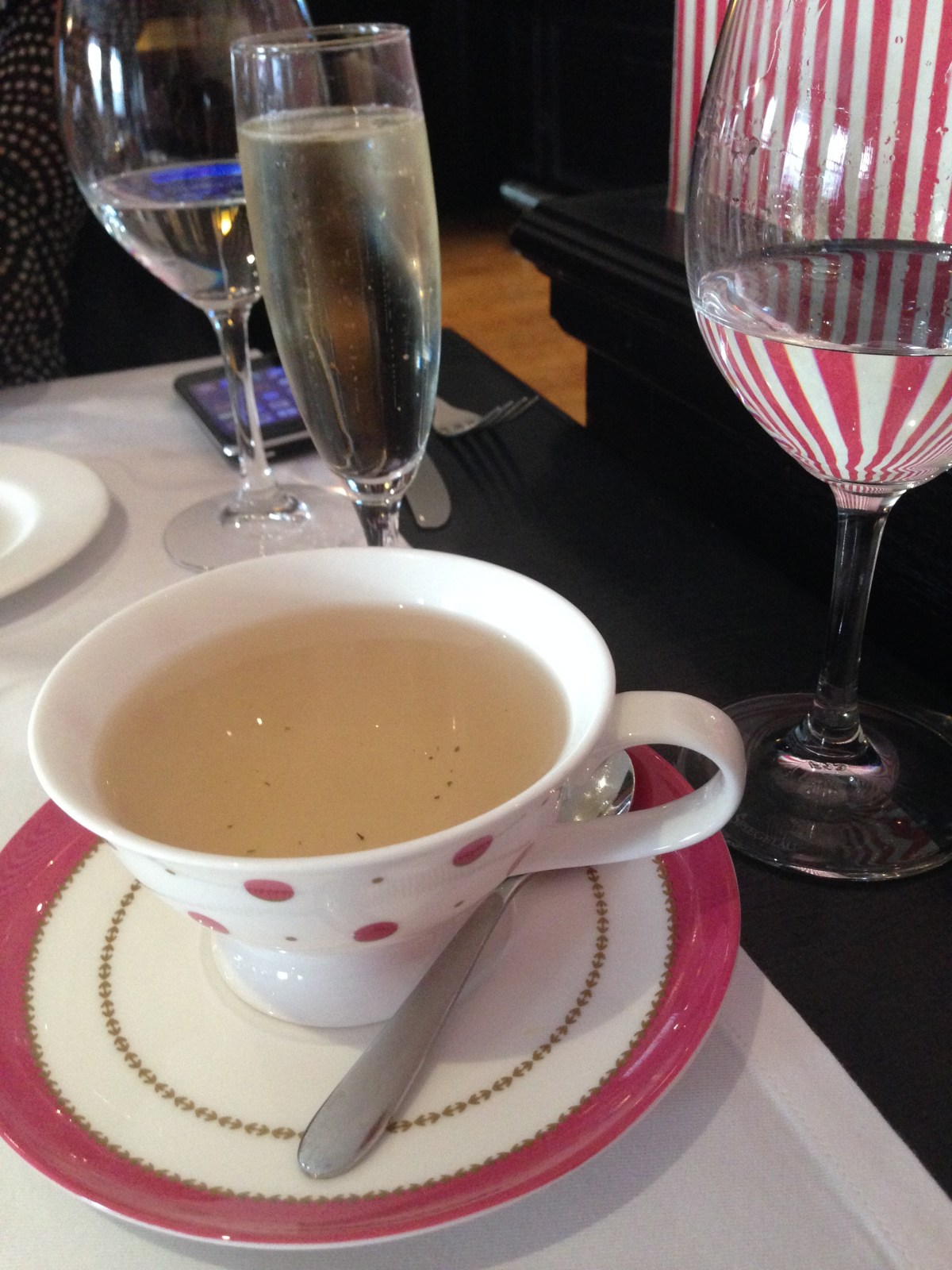 The deal included the near obligatory glass of prosecco, which we duly sipped at happily. The server was a bit out of sorts, I think, as she just asked ‘what would you like, English breakfast or Earl Grey?’ and it was only on asking if there were other options that it turned out there was a whole tea menu.