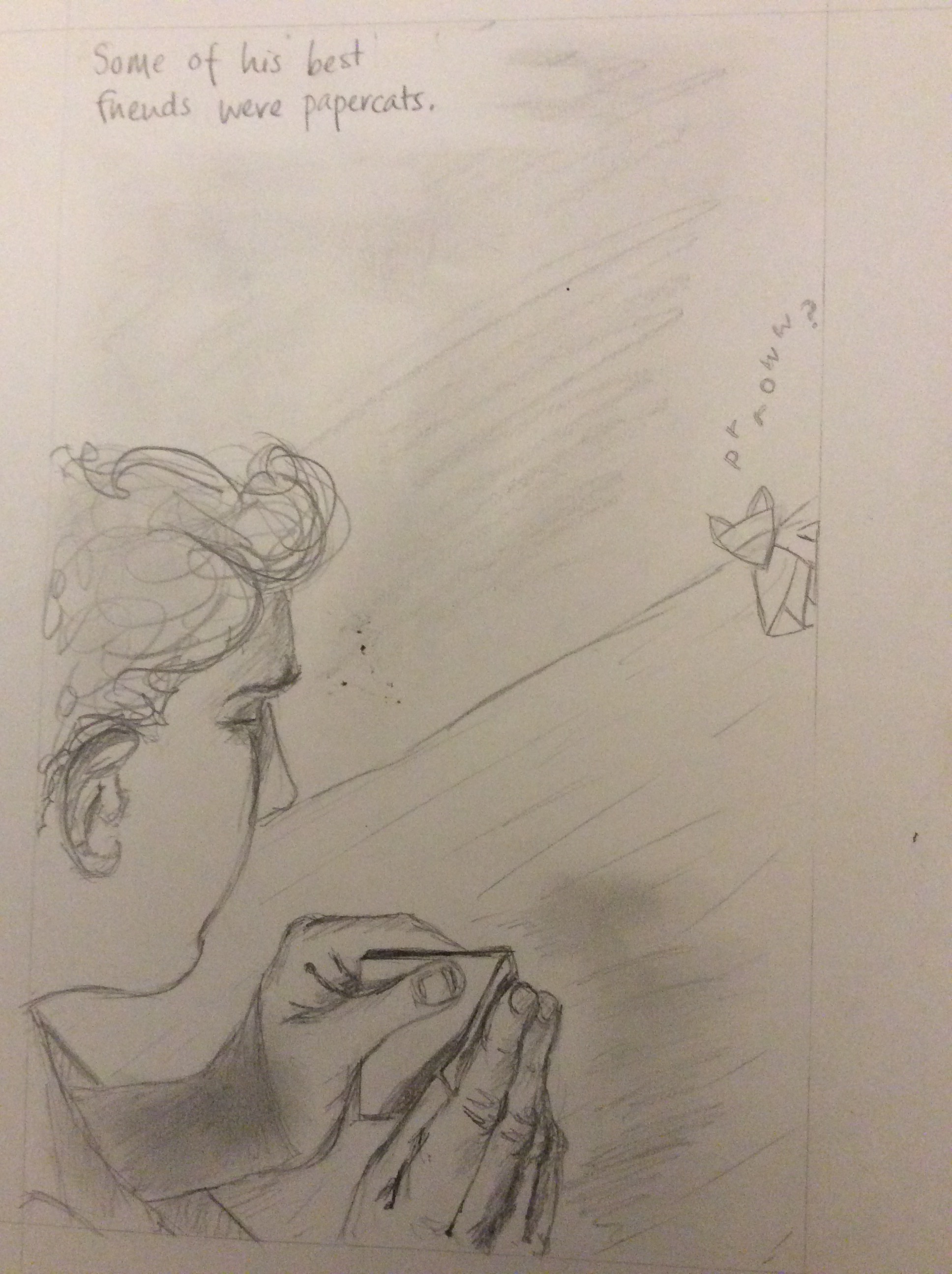 Of course it wasn’t literally paper. He had a house, with broad stone walls, a scarred wooden table and a warm kitchen. Tom had family, and Tom had friends. And every one of them was a perfect paper cat.