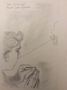 He sat at the table, frustrated and dismayed. He had never before been stuck for inspiration, but this time it seemed like he’d already made everything there was to be made. His hands started to itch to fold paper, but his brain didn’t know what shape the paper should take.