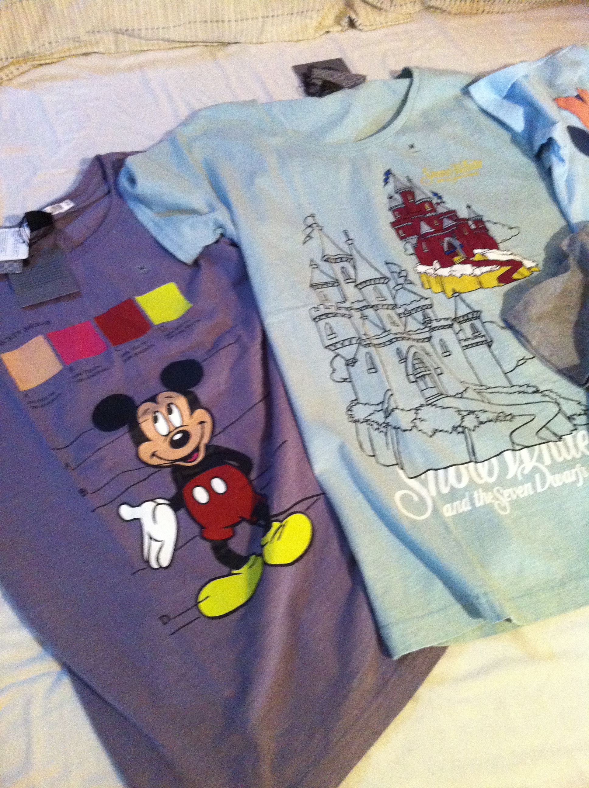 So, the upshot is I now have five Uniqlo / Disney t-shirts. It started with the bow one I wear in the photos on this very blog, and then I bought another four today. In my defence they are just £7.90 each, and fit me really well. They’ve got a really long body, which I often find is a huge problem with t-shirts – I had to stop buying from Threadless, because they looked like they were cutting me in half as I’m both tall and generous of belly – and the designs are a little bit more like what you get in Disney Parks, than what you get in the Disney Store. They’re also quite generously sized. I’m an M&S 14, and I comfortably fit the Medium.