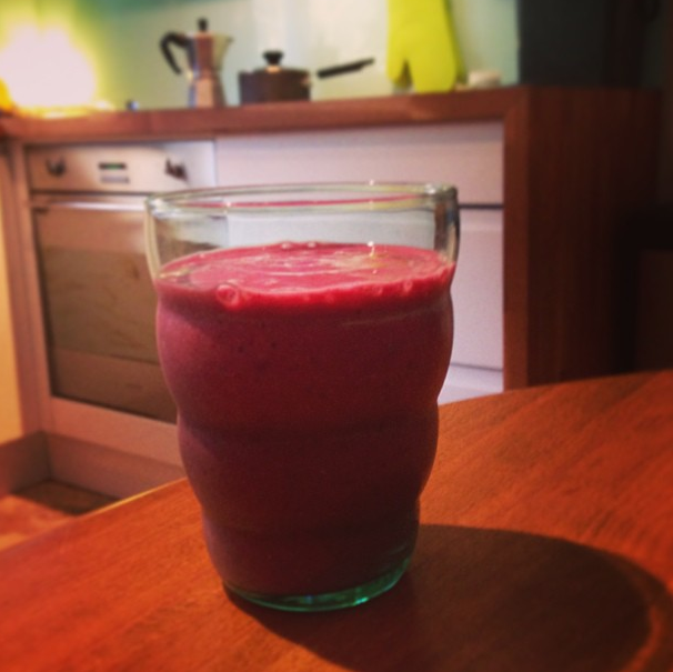 Using frozen berries means they’re always to hand in the freezer, regardless of season, but it also makes the smoothie ice cold, which is particularly nice if you’ve bought long life almond milk and it hasn’t been in the fridge.